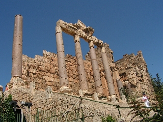 Libanon - die Schweiz des Nahen Ostens hörten wir schon oft. Wir können dies nur bestätigen, denn nach einer halben Stunde Busfahrt von Beirut Richtung Baalbek waren wir mitten in den Bergen auf 2000 m. In der Ferne sah man sogar Berge über 3500 m, die schneebedeckt waren. Rechts und links des Weges sahen wir moderne Ortschaften, die restauriert oder neu gebaut waren. Wir sahen nicht mehr viel von den verheerenden Bürgerkriegsschäden. Dann fuhren wir durch die Bekaa - Hochebene, ein sehr fruchtbarer Streifen dieses schönen Landes. Auf den Straßen waren manchmal Kontrollposten, denn wir wechselten die Einflußgebiete. Mal waren wir auf christlichem-, mal auf moslemischem Boden, und sogar ein Hisbollah-Gebiet durchfuhren wir.